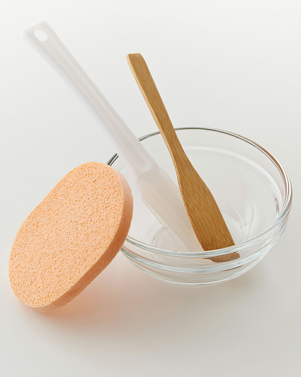 ガラスボール内に残った作ったクレイペーストを残さずきれいに集めてくれるゴムスパチュラ。 クレイを塗るためにはお勧めはしておりません。 ※写真の竹スパチュラ、スポンジ、ガラスボウルは含まれません。